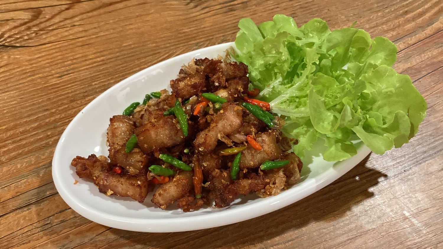 4. ขั้นตอนสุดท้าย (ระวัง!): พอกระเทียมเริ่มเหลืองสวย ให้ใส่ "พริกขี้หนูสวน" ตามลงไป ขั้นตอนนี้สำคัญมาก คือให้ผัดแค่แป๊บเดียวพอให้พริกโดนความร้อน แล้วรีบตักขึ้นทันทีครับ เพราะถ้าทอดพริกนาน พริกจะแตกและดีดตัวกระเด็นใส่ได้ครับ