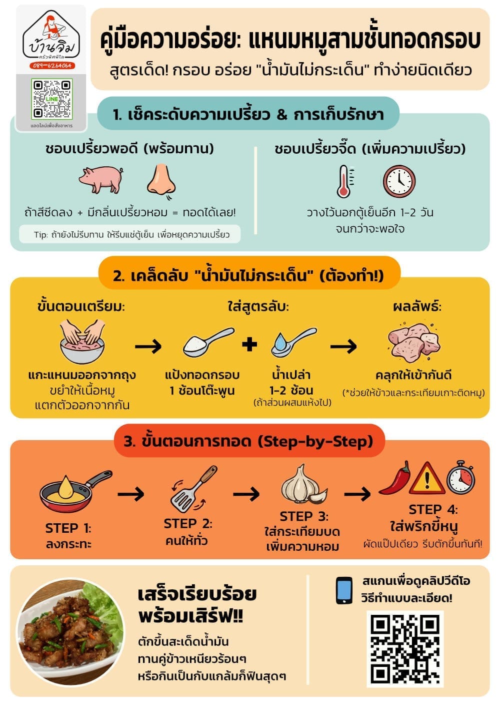 อย่าลืมนำเคล็ดลับการใช้แป้งทอดกรอบนี้ไปลองใช้กันดูนะครับ รับรองว่าการทอดแหนมครั้งต่อไป ครัวของคุณจะสะอาด ไม่เลอะเทอะน้ำมันแน่นอน