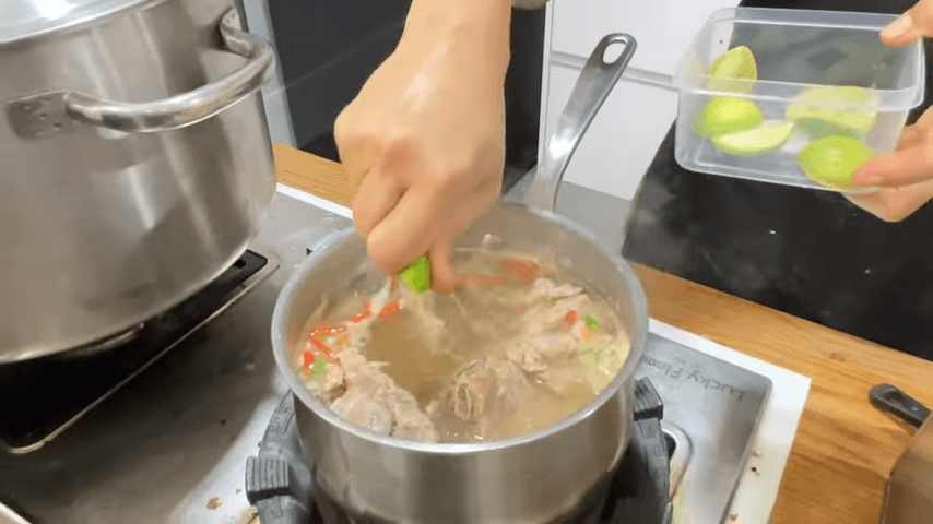 ปิดไฟทันที (สำคัญมาก!) แล้วค่อยบีบ มะนาวสด ลงไป วิธีนี้จะทำให้น้ำซุปหอมกลิ่นมะนาวและไม่ขม