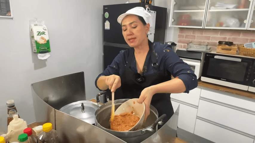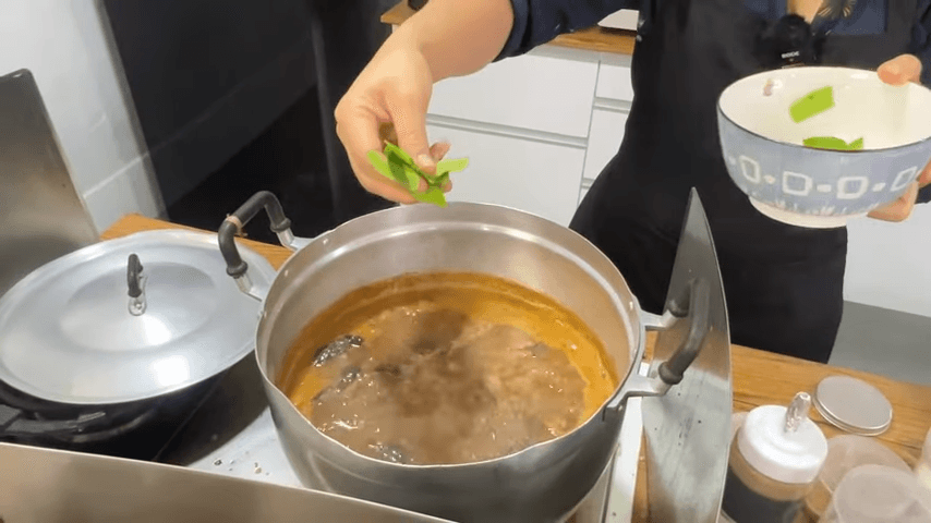 3. ปรุงน้ำยาหม้อปลาร้า: เทเครื่องแกงที่ปั่นละเอียดแล้วกลับลงไปในหม้อน้ำต้มสมุนไพรเดิม เปิดไฟต้มให้เดือด ปรุงรสด้วยน้ำปลาร้า น้ำปลา ชิมรสให้ได้ความเค็มและความนัวตามชอบเลยค่ะ